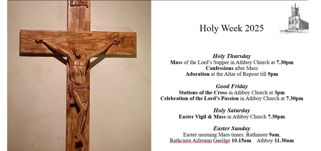 Confessions for Christmas: Penitential Service after Vigil Mass next Saturday 20th & after 11.30am Mass next Sunday 21st December, in Athboy Church.