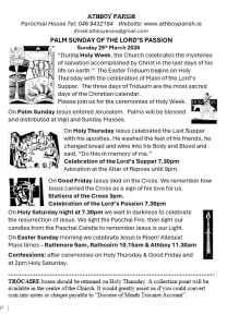 9.30am Mass on Thursday will be celebrated St Joseph’s altar in Athboy Church.