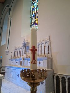 Our parish is dedicated to St. James from the earliest times. St. James, a fisherman, was one of the first apostles, is the patron saint of pilgrims. He is represented in a magnificent stained glass window in St. James’ Church, Athboy with his staff, water jug, and satchel. His symbol a cockle shell is pinned to his cloak. In his hands is a representation of our church as he raises it up to God.