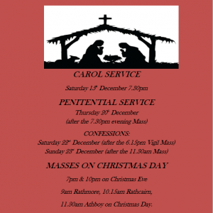 Christmas in our Parish Published on As we prepare to welcome Christ our Saviour, we announce times of Masses and Confessions for the Holy Season of Christmas in our parish. Everyone is welcome to join us a be part of the celebration.