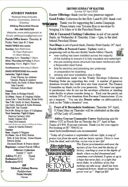 Newsletter Sunday 26th April 2026 download PDF Sunday 19th April 2026 download PDF Sunday 12th April 2026 download PDF Sunday 5th April 2026 download PDF 2026 Newsletters March 2026 Sunday 29th March 2026 – Palm Sundaydownload PDF Sunday 22nd March 2026download PDF Sunday 15th March 2026download PDF Sunday 8th March 2026download PDFFebruary 2026 Sunday 1st March 2026download PDF Sunday 22nd February 2026download PDF Sunday 15th February 2026download PDF Sunday 8th February 2025download PDF Sunday 1st February 2026download PDFJanuary 2026 Sunday 25th January 2026download PDF Sunday 11th January 2026download PDF Sunday 4th January 2026download PDF Sunday 28th December 2025download PDF Annual Archive 2026 2025 2024 2023 2022 2021 2020 2019 2018 2017